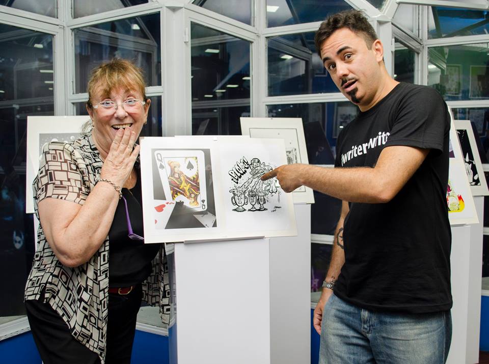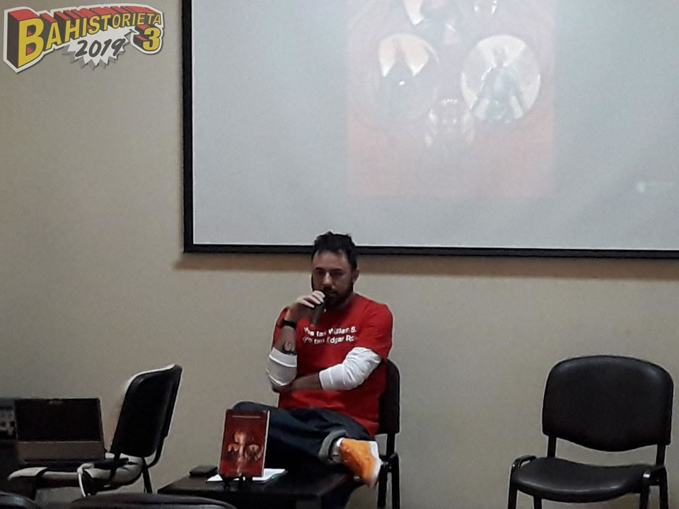 Laura Vasquez Hutnik le dijo: "¿Te animás a escribir dos ponencias para el Congreso Internacional que estoy organizando?". Cómo negarse a escribir y exponer ensayos donde pudo combinar historieta y política. Nunca se sacó la gorra en todo el Congreso.