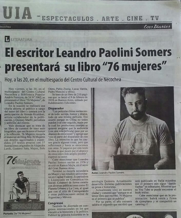 Le contó cómo fue su primera vez a su ex y ella se cayó de la cama de la risa. Leandro se dio cuenta que tenía algo patéticamente gracioso en sus manos. Ella lo alentó a que convierta sus anécdotas en blog. Diego Agrimbau y Sebastián De Caro le sugirieron que le ponga más humor a su vida, y se tome todo con menos gravedad. Así nació Mis 76 Mujeres.