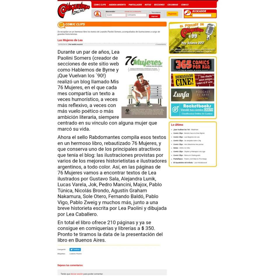 Mis 76 Mujeres: "M76M es un blog de anécdotas personales y tragicómicas que quiere ser humorístico. Mensualmente con una ilustración invitada de los mejores de Argentina".