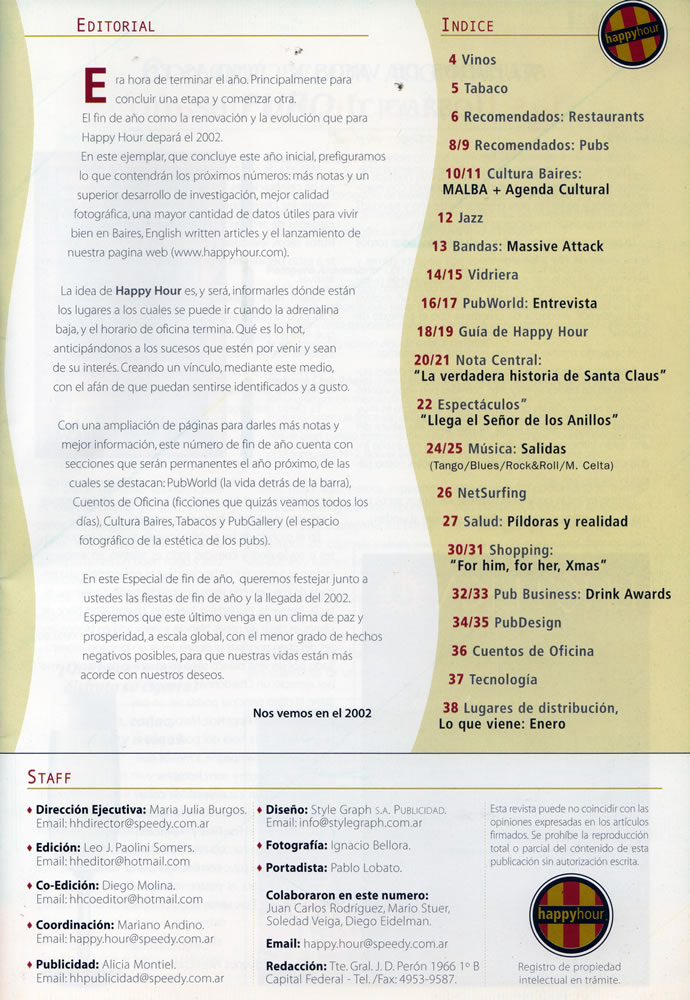 Fue editor y periodista en esta publicación especializada acerca de bares y la buena vida en Buenos Aires. La crisis de diciembre de 2001 les puso las sillas arriba de la mesa.