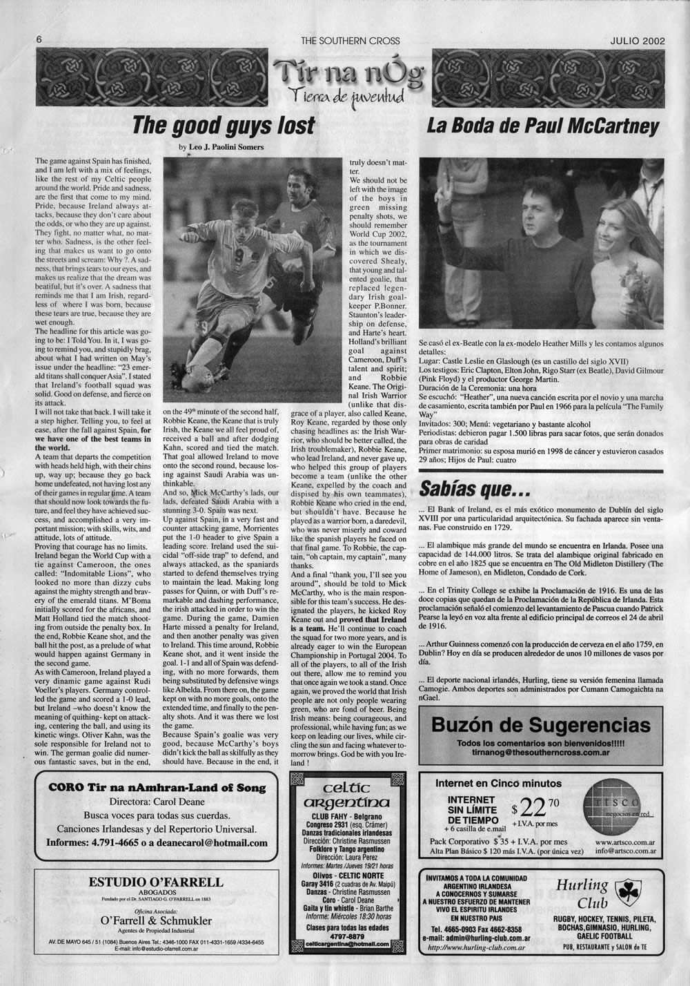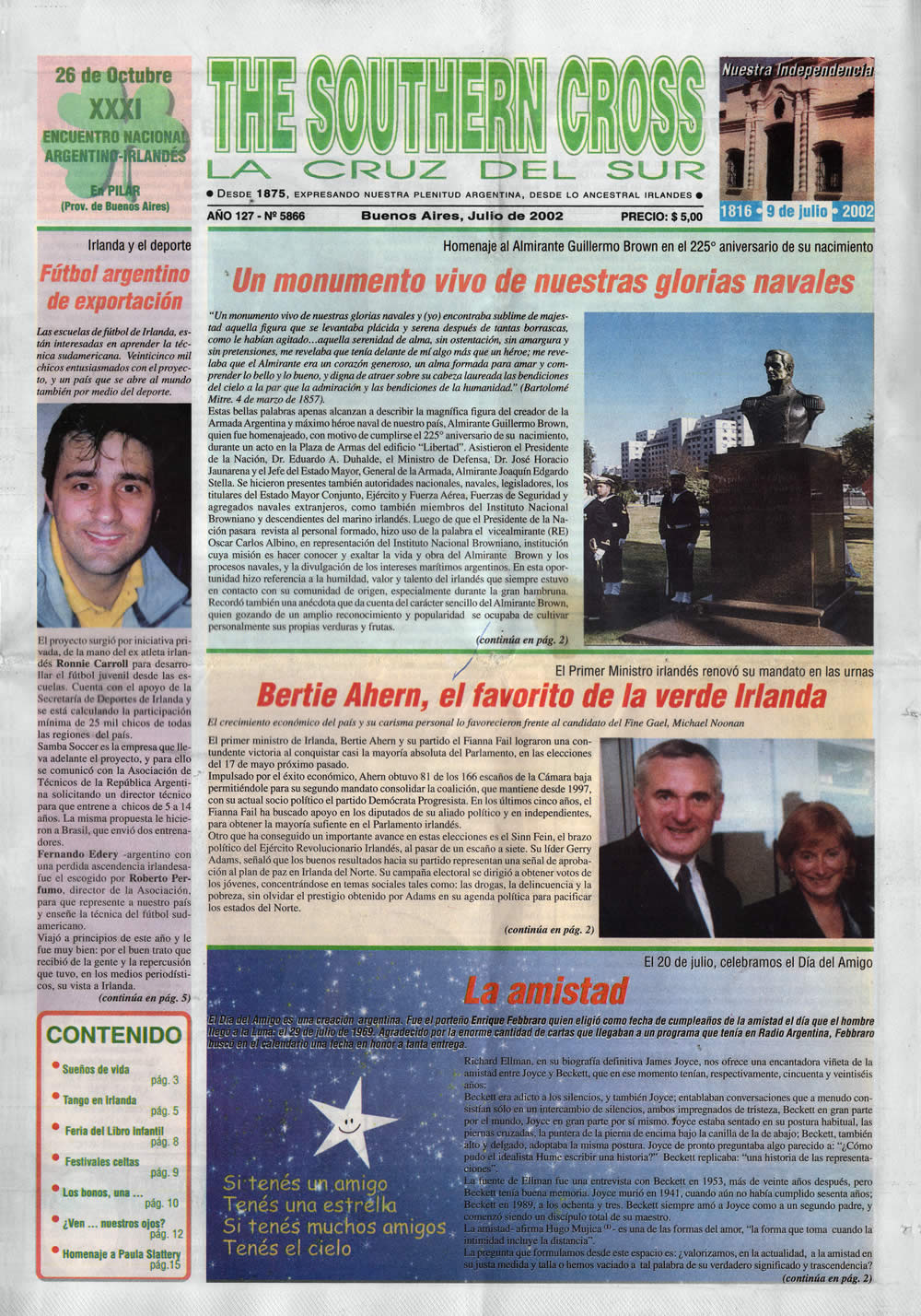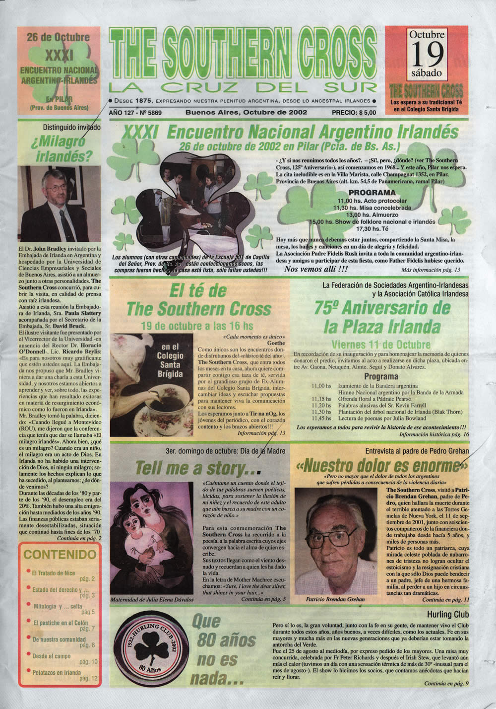 The Southern Cross: "Desde 1875 expresando nuestra plenitud argentina desde lo ancestral irlandés".